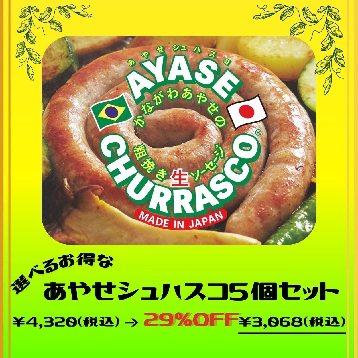 ※数量限定【毎月29日限定】選べるお得な あやせシュハスコ5個セット¥4,320 →¥3,068(29%OFF)