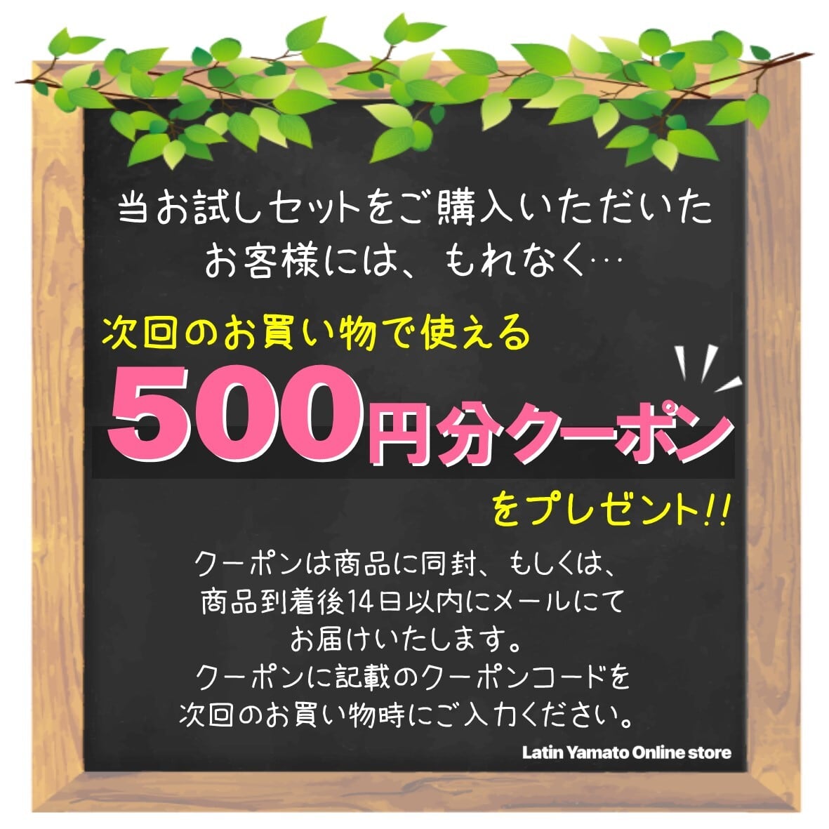 また、当お試しセットをご購入いただいたお客様には、次回のお買い物で使える500円クーポンをプレゼント!